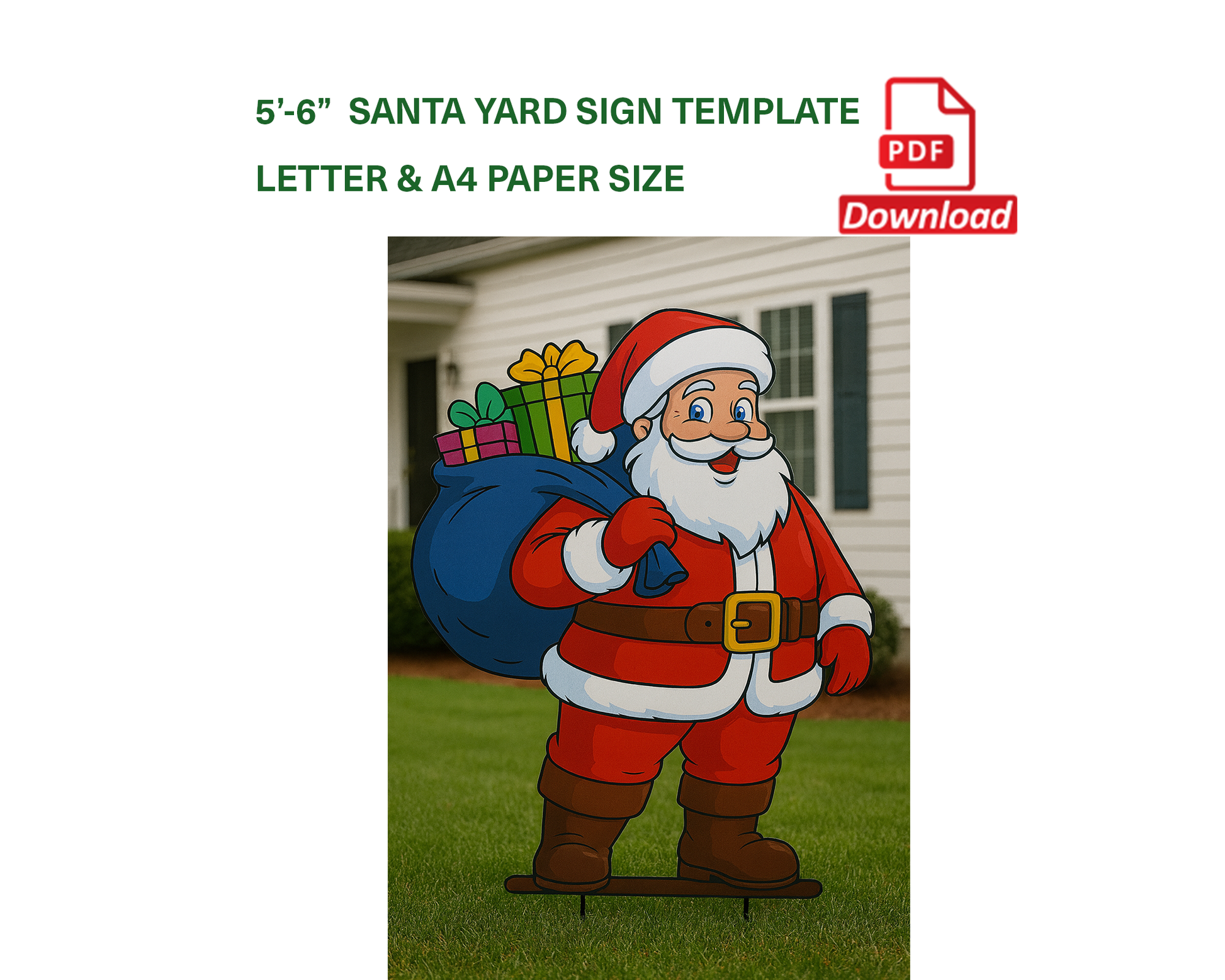 Santa Claus Yard Sign Template | Christmas Outdoor Decor (PDF)